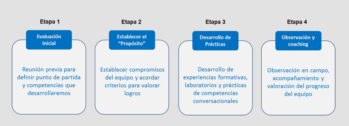 observadas por coaches expertos, que luego entregan feedback estratégico para afianzar una nueva forma de trabajo más integrada,